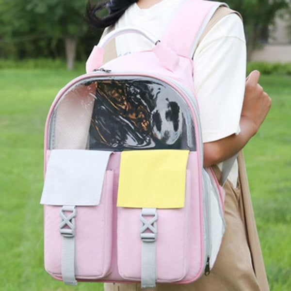Travel in style and comfort with this colourful, double-shoulder pet carrier backpack (Model 6 Blue), perfect for cats and dogs up to 7.5kg. Made from durable, waterproof Oxford cloth and PC, this lightweight carrier ensures your furry friend stays dry and secure. Adjustable shoulder straps provide a comfortable carrying experience, while the large, transparent window offers excellent visibility and ventilation. This spacious carrier (31 x 25 x 39cm) weighs just 800g, making journeys a breeze. Ideal for vet visits, walks in the park, or weekend adventures.