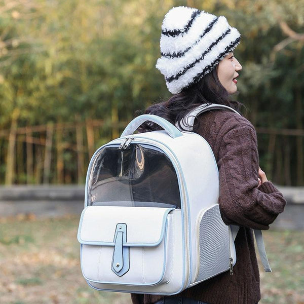 Stylish and comfortable travel for your furry friend with this PU Pet Carrier Backpack (Model 6 Black). Suitable for both cats and dogs up to 5kg, this carrier features a large, transparent window, allowing your pet to enjoy the view while remaining safe and secure. The widened, breathable shoulder straps ensure comfortable carrying for you, while the robust, anti-pressure design and reinforced base provide a stable and secure environment for your pet. Easy to clean with a fully washable design, this pet carrier helps maintain hygiene and reduce bacteria build-up. Dimensions: 42 x 33 x 25cm. Weight: 860g. Perfect for vet visits, travel, or everyday outings.