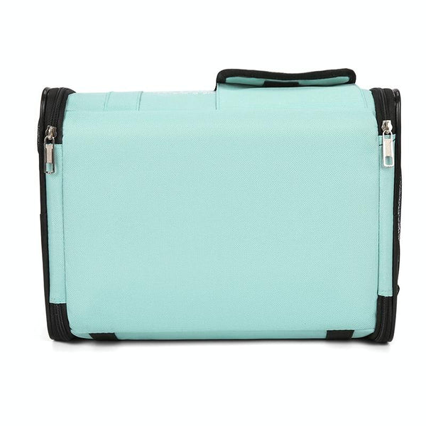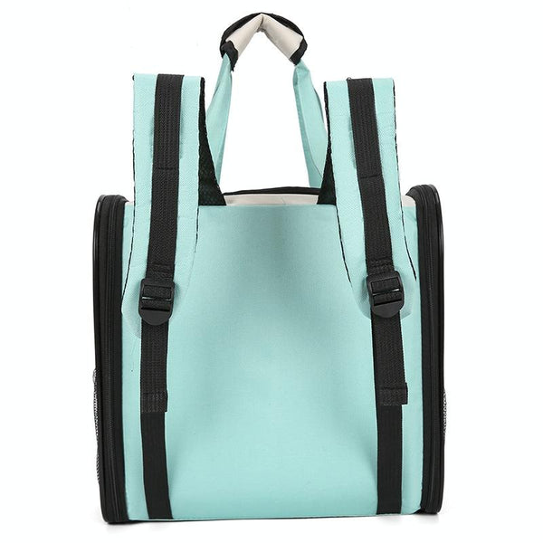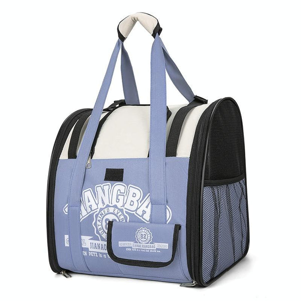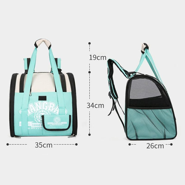 Travel in style and comfort with the Simple Contrasting Pet Backpack Space Capsule Cat and Dog Carrier Bag (Model 5 Blue). This lightweight and durable pet carrier backpack is perfect for small cats and dogs weighing up to 7.5kg. The innovative space capsule design offers ample ventilation with a top zipper opening, allowing your pet to peek out and enjoy the journey. Side openings provide easy access for interaction and comforting your furry friend. A comfortable carrying handle and adjustable shoulder straps ensure a comfortable carrying experience for you. Crafted from durable nylon with reinforced stitching and a sturdy metal zipper, this pet backpack is built to last. Approximate dimensions are 34 x 35 x 26cm. Treat your pet to the ultimate travel experience.