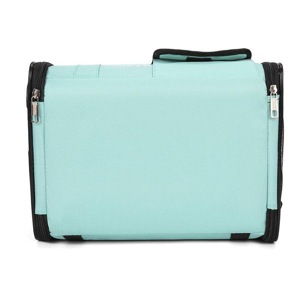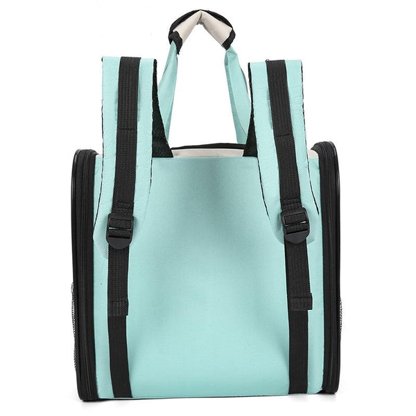 Travel in style and comfort with the Simple Contrasting Pet Backpack Space Capsule Cat and Dog Carrier Bag in Green (Model 5). This lightweight and durable pet carrier is perfect for small cats and dogs weighing up to 7.5kg. The innovative space capsule design offers ample ventilation with a top zipper opening, allowing your furry friend to peek out and enjoy the journey. Easy access is ensured via large side openings, making it simple to interact with your pet. The adjustable buckle straps provide a comfortable and customisable fit, while the reinforced triangular design and sturdy metal zipper guarantee a secure and reliable carrier. Crafted from durable nylon, this backpack features a comfortable carrying handle and is designed for effortless transport. Dimensions are approximately 34 x 35 x 26cm, with a weight of around 1kg. Make every adventure a joy with this stylish and practical pet carrier.
