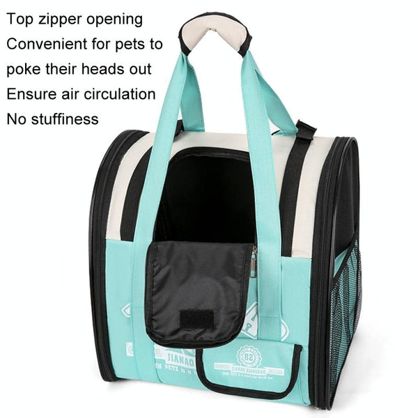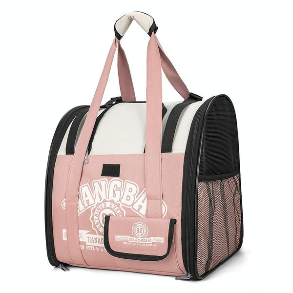Travel in style and comfort with the Simple Contrasting Pet Backpack Space Capsule Cat and Dog Carrier Bag in Pink (Model 5). This lightweight, breathable pet carrier backpack is perfect for small cats and dogs weighing up to 7.5kg. The top zipper opening allows your furry friend to peek out and enjoy the fresh air, while the large side openings provide easy access for interaction and cuddles. A comfortable carrying handle and adjustable shoulder straps ensure a comfortable carrying experience, even on longer journeys. Crafted from durable nylon with reinforced stitching and a sturdy metal zipper, this pet backpack is built to last. The triangular reinforcement design provides extra support and stability. Approximate dimensions are 34 x 35 x 26cm, and it weighs approximately 1kg. Treat your pet to the ultimate travel experience with this stylish and practical space capsule pet carrier.