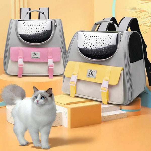 Foldable Cat Backpack Carrier, Yellow, Portable, Breathable