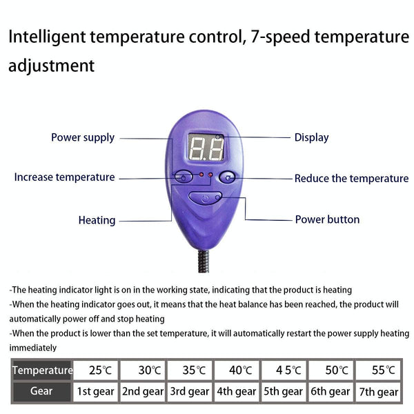 - 1.2m heating pad cable and 1.5m UK plug cable included