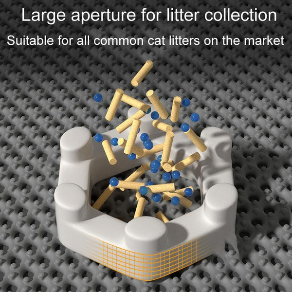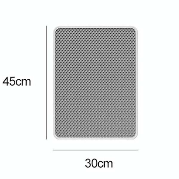 Keep your floors clean and litter-free with this 45 x 30cm double-layer EVA litter mat. Designed for both cats and dogs, this waterproof and splash-proof mat features a large-aperture honeycomb design that effectively catches stray litter. The trapped litter is then easily collected in the lower layer, keeping your home tidy and reducing waste. Made from durable, non-toxic, and odourless EVA material, this mat is also washable for easy cleaning. The non-slip base ensures the mat stays securely in place, preventing slips and spills. Ideal for all types of cat litter. Dimensions: 45 x 30cm. Weight: 600g.