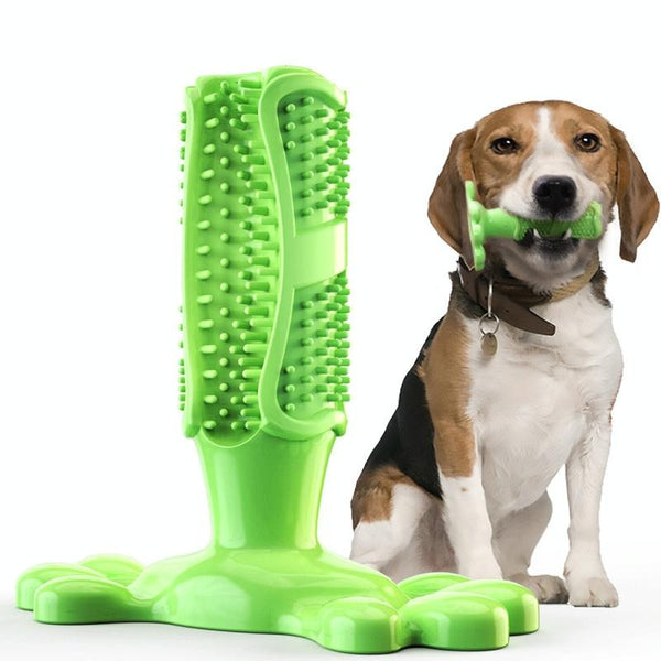 Dog Toothbrush Chew Toy, Green, Large - Cleans Teeth & Gums