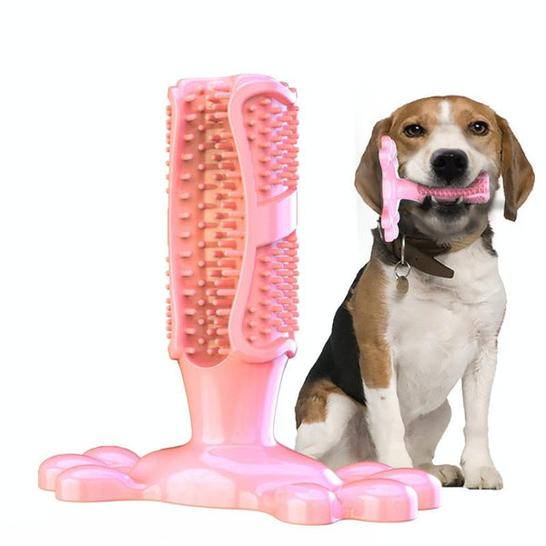 Dog Toothbrush Chew Toy, Pink, Medium - TPR Rubber, Cleans Teeth & Gums