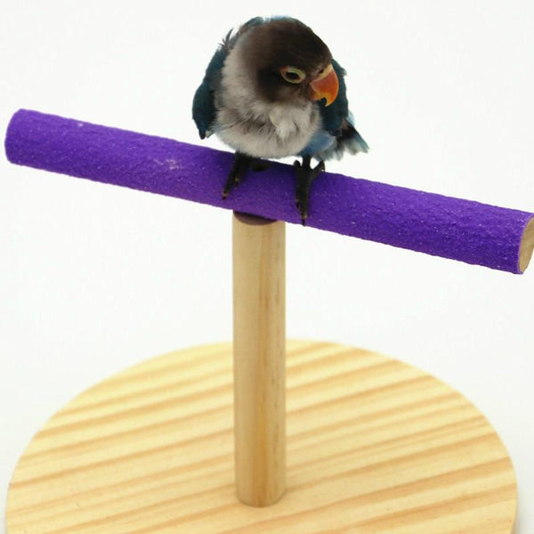 Large Frosted Wooden Parrot Perch Stand - Bird Toy