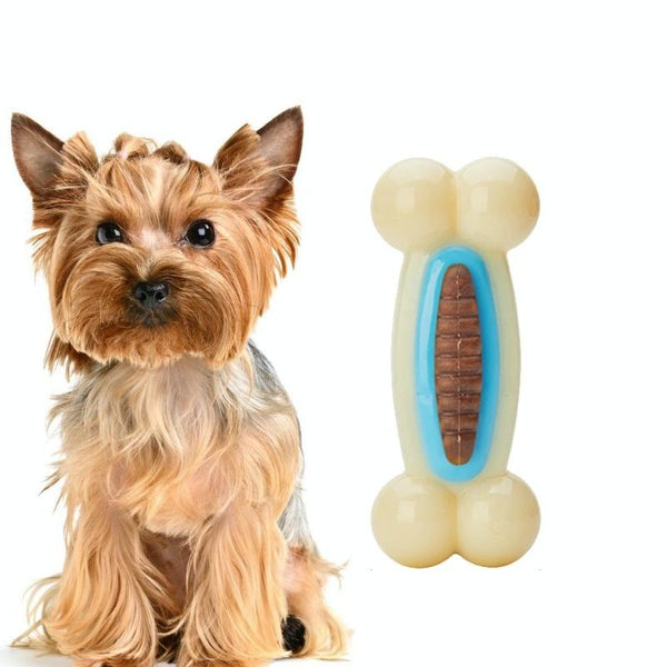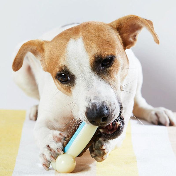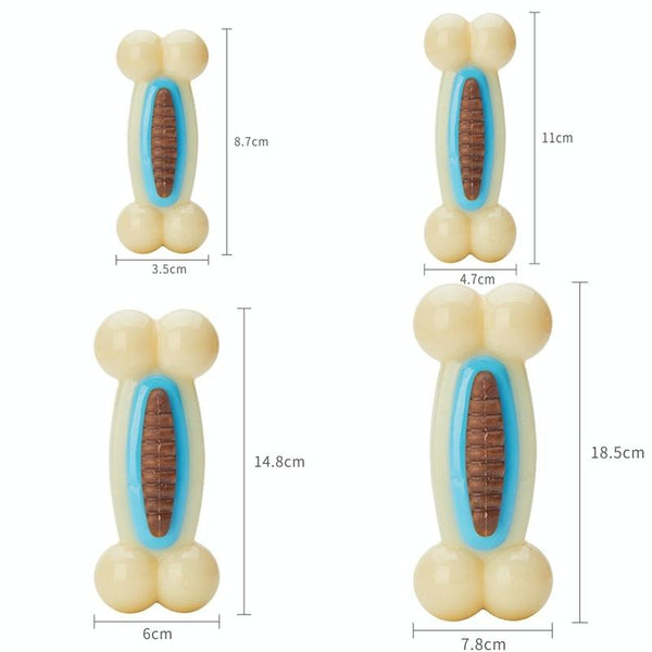 Keep your furry friend entertained for hours with this durable and engaging dog bite resistant molar toy. Made from tough nylon and PU with a tasty cowhide and TPE centre, this chew toy is designed for even the most enthusiastic chewers. This long-lasting nylon bone helps satisfy your dog's natural chewing instincts, promoting healthy teeth and gums while reducing boredom and destructive behaviour. Suitable for all dog breeds, this interactive toy combines play and treat dispensing. Fill the centre with your dog's favourite snacks to keep them engaged and mentally stimulated, especially when home alone. This dog chew toy is perfect for interactive play and provides a safe and satisfying outlet for chewing, helping to prevent damage to furniture and belongings.