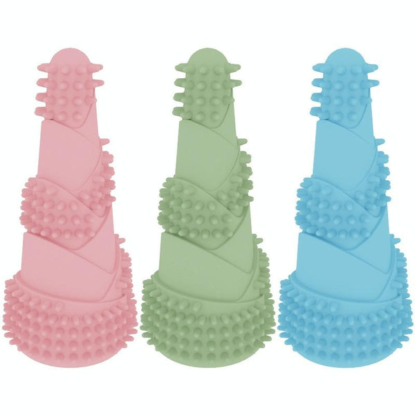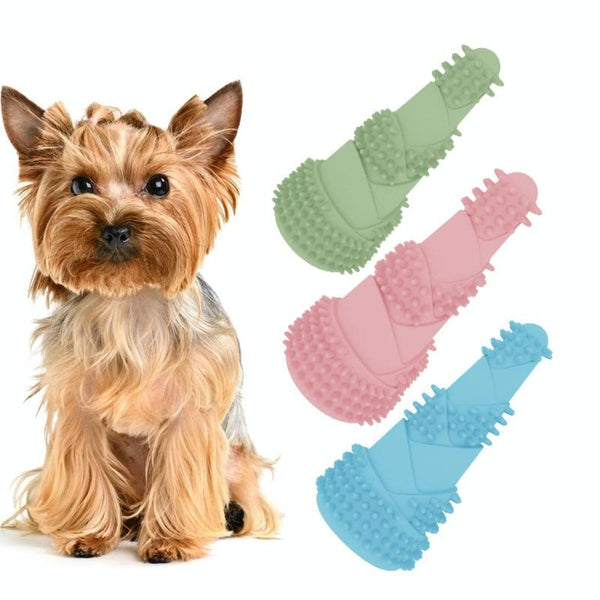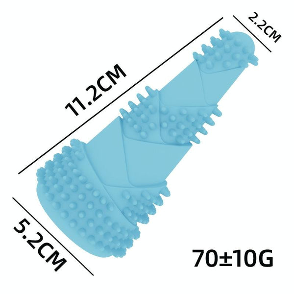 Keep your dog's teeth clean and healthy with this bamboo shoot-shaped molar stick chew toy. The textured, thorn-like bumps effectively clean teeth and help prevent dental calculus and gum disease. Made from durable, bite-resistant TPR material, this chew toy is easy to clean and gentle on your dog's gums. Its smooth, rounded design ensures a comfortable chewing experience. This avocado green toy measures 11.2 x 2.2 x 5.2cm and weighs approximately 70g.