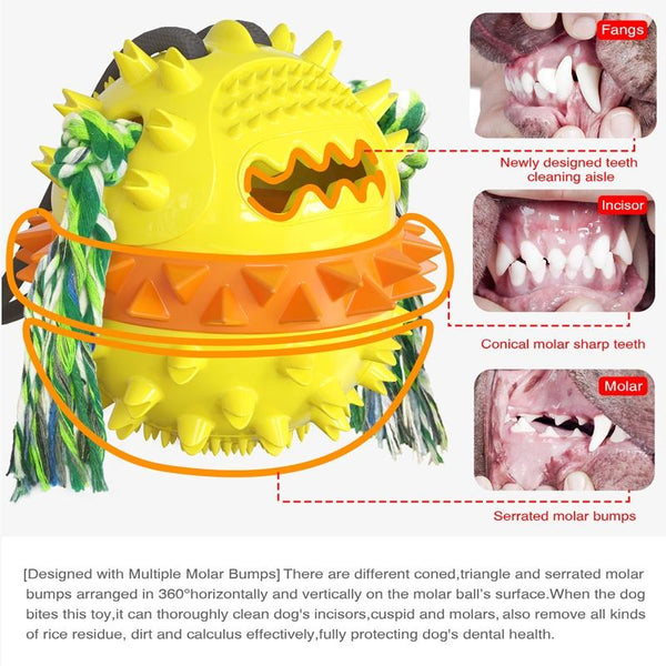 The unique molar ball design features various textured convex points to promote healthy teeth and gums. Fill the built-in treat dispenser with your dog's favourite snacks for an added reward. Suitable for dogs weighing 5-100 lbs.