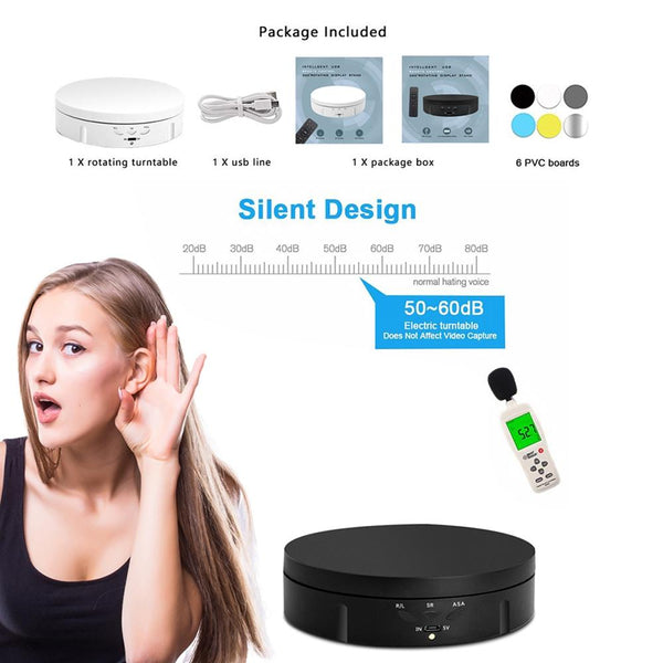 14.6cm Remote Mirror USB Electric Rotating Turntable Display Stand, Load: 10kg(Black)