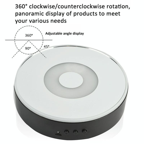 1. Use this rotating stand to display your favorite works. It features gradient colored lights that make the items more beautiful and charming.