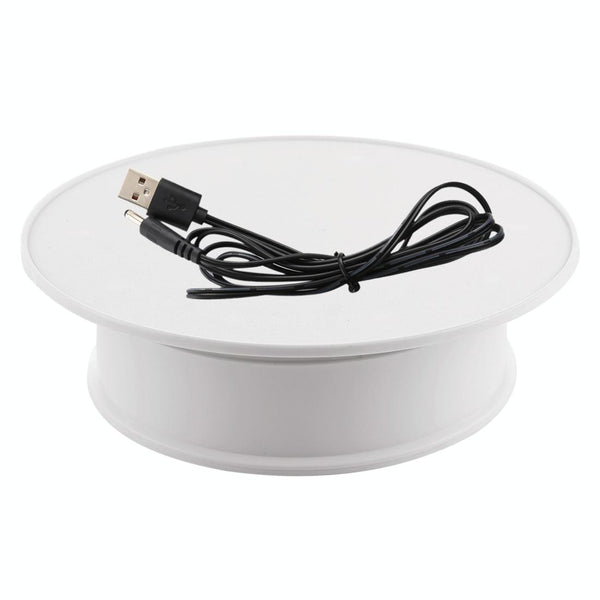 20cm 360 Degree Electric Rotating Turntable Display Stand Photography Video Shooting Props Turntable, Load 1.5kg, Powered by Battery & USB(White)