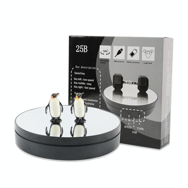 25cm Adjustable Speed Electric Rotating Display Stand Video Shooting Props Turntable(Golden Mirror)