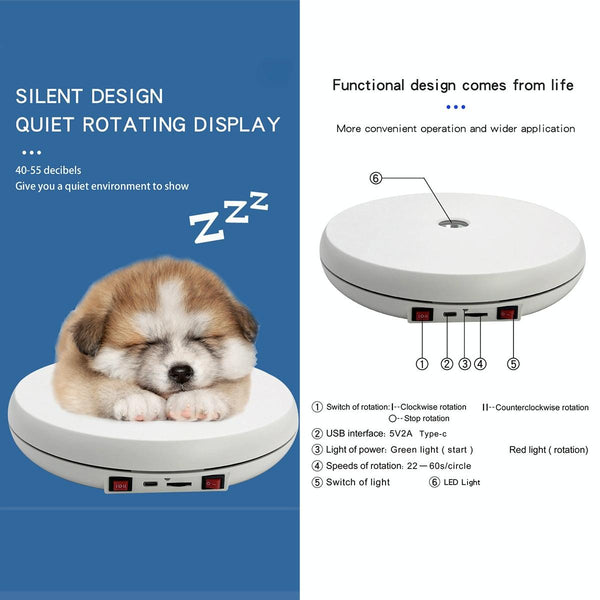 25cm LED Light Electric Rotating Display Stand Turntable (Black)
