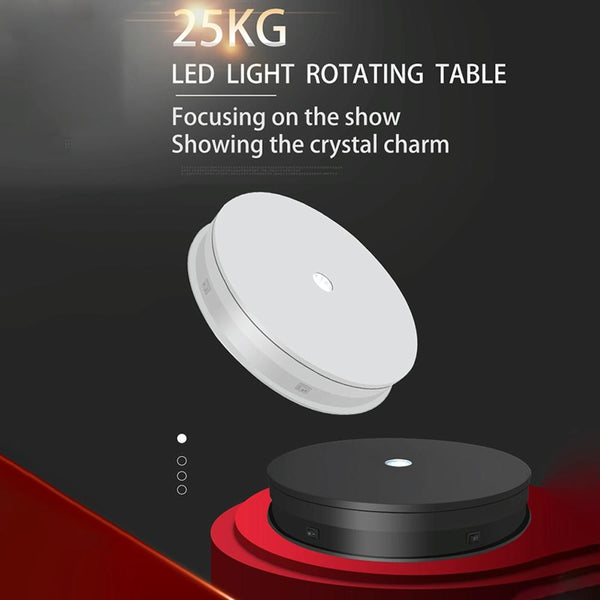 30cm Electric Rotating Turntable Display StandLED Light Video Shooting Props Turntable, Power Plug:220V EU Plug(White)