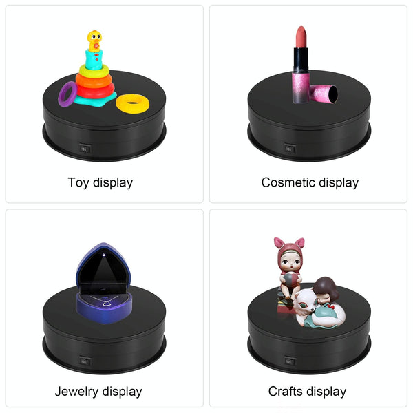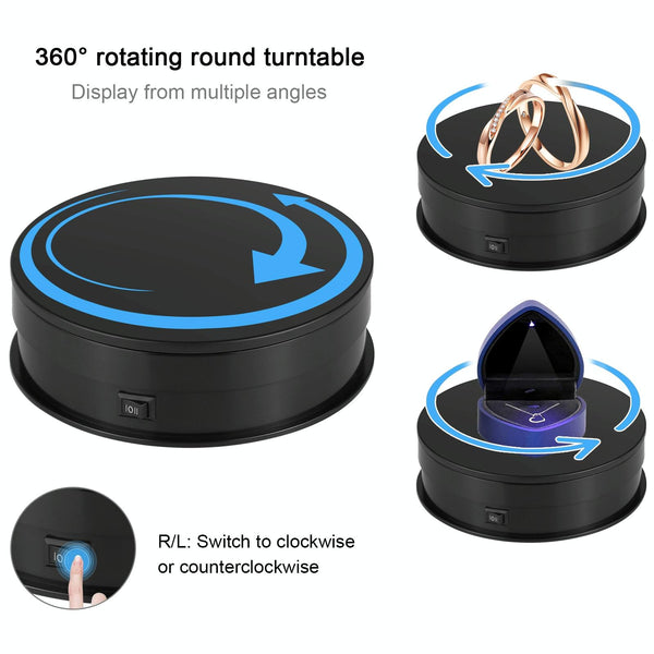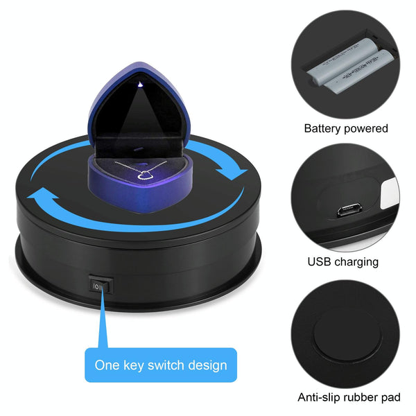8. The turn table is an all-purpose display, promotion, glorify display stand, energy-efficient illumination. Designed for home and exhibition, store, shop is great for display wine, model, electronics, decoration and photography