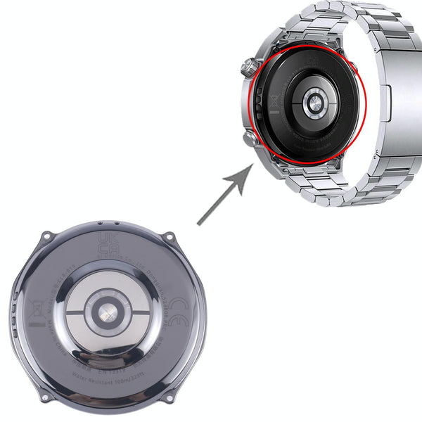 Search terms: Huawei Watch Ultimate, back cover, back cover replacement, repair part, heart rate sensor, wireless charging, loudspeaker, motor, genuine part.