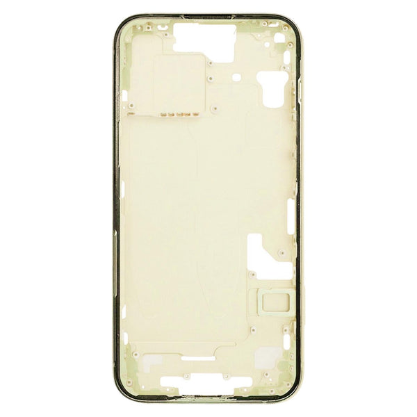 Replace your damaged or faulty iPhone 15 middle frame bezel with this high-quality, yellow (CE certified) replacement. This complete unit includes the side keys and SIM card tray, making it a convenient solution for a variety of repairs. Restore your iPhone 15's pristine appearance and functionality with this refreshing new part. Professional installation is highly recommended to avoid potential damage. Please note, we are not liable for any damages incurred during installation.