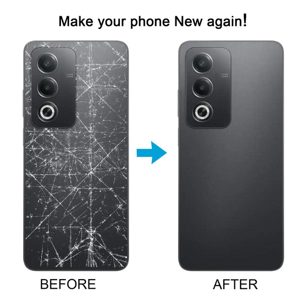Search terms: OPPO A3, back cover, battery door, housing, camera lens, replacement part, black, repair, fix, damaged, scratched, broken, new