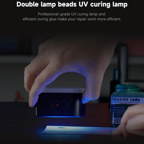 - Rapid UV Curing: Dual UV lamp beads for fast and effective adhesive curing.