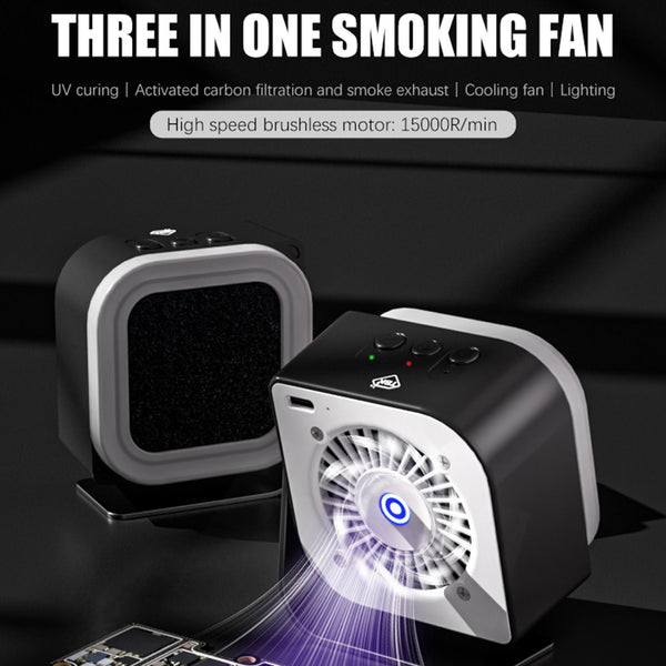 - 3-in-1 Functionality: Fume extraction, UV curing, and cooling fan in one compact unit.
