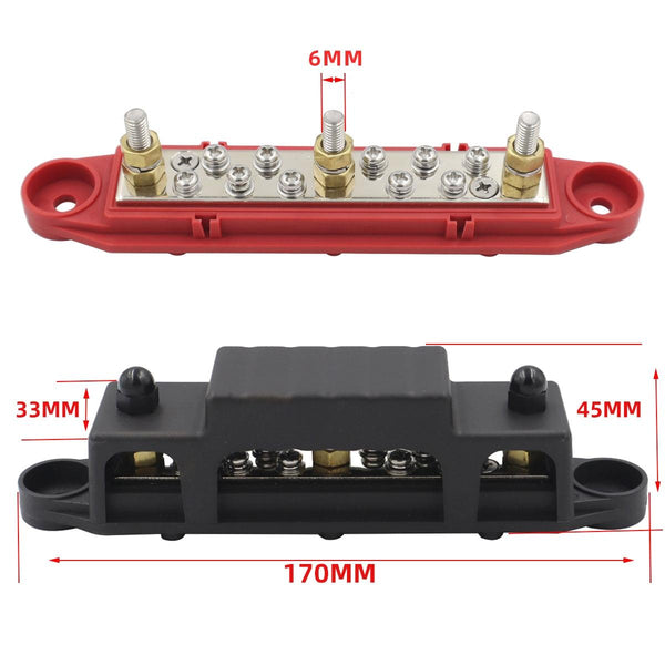 1 Pair 48V 150A M6 Power Distribution Terminal Block Battery Bus Bar Set with Terminal Block