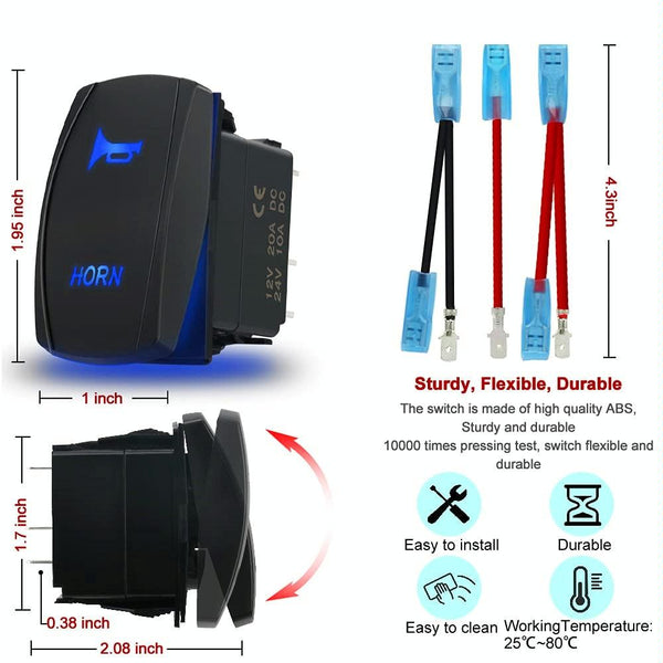 12 20A / 24V 10A Car Horn Rocker Switch with Jumper Set