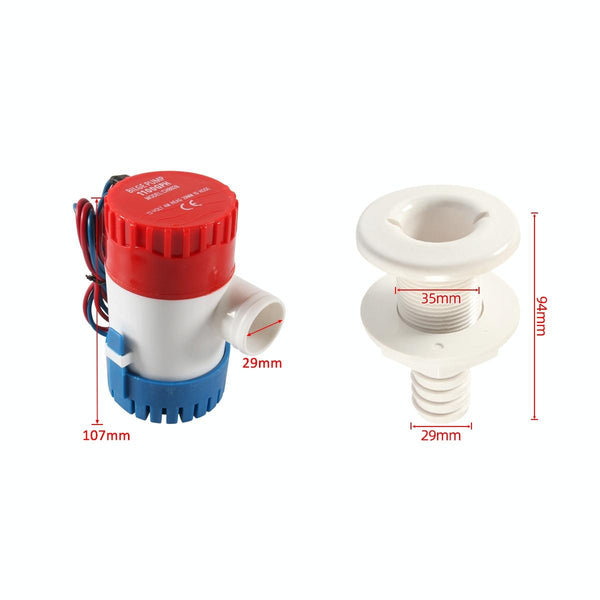 12V-1100GPH Boat / RV Bilge Sump Water Pump with Black Drain Pipe