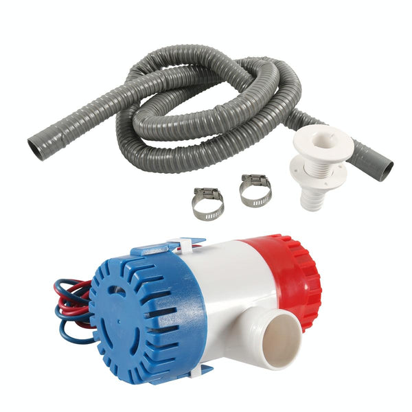 12V-1100GPH Boat / RV Bilge Sump Water Pump with Grey Drain Pipe