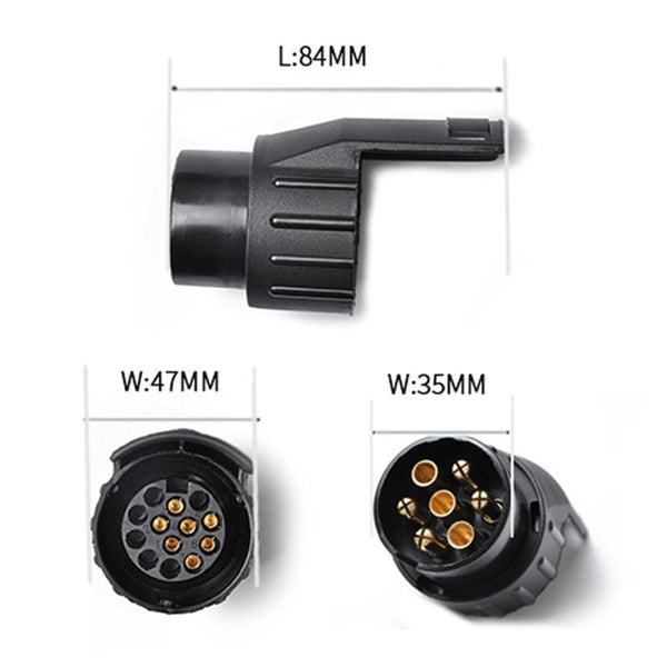 2. Converts the 7-pin socket on your car to the 13-pin female socket.