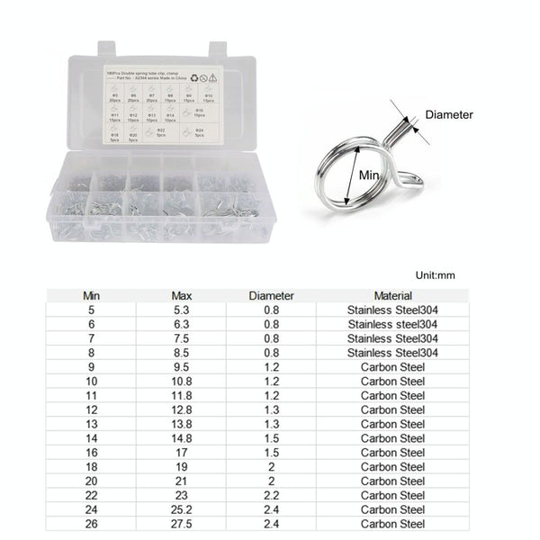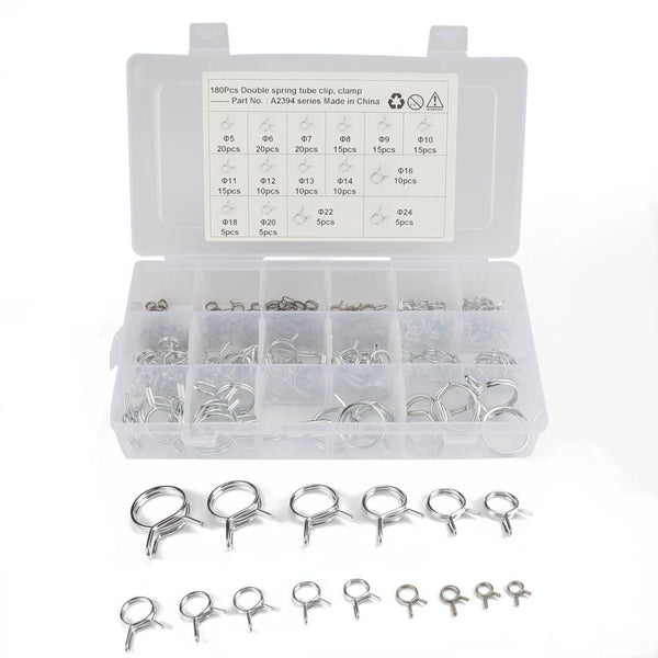 180 PCS Double Wire Spring Tube Clamp Water Pipe Clamps, Size: 5-24mm