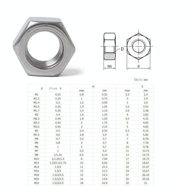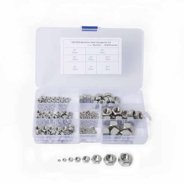 185 PCS Car 304 Stainless Steel Hexagon Socket Screws Assortment Kit M2-M12