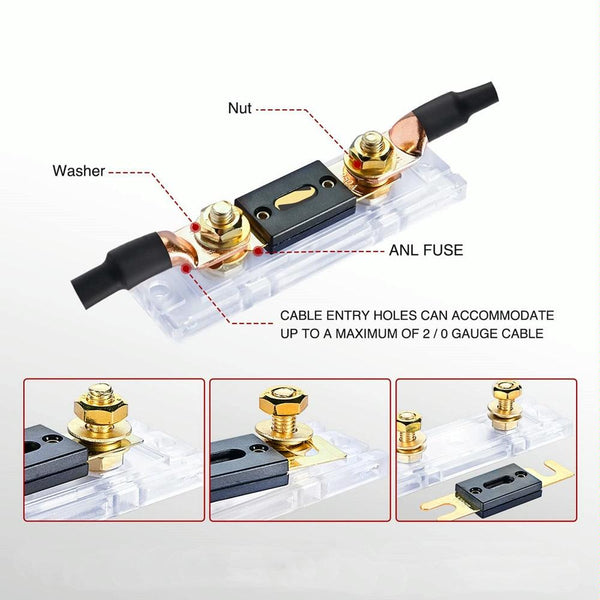 2. ANL fuse holder is suitable for circuits with a rated voltage of 32V, provides protection for speakers, stereos, and other components,can be applied on car, boat o video systems good accessory for car o and other high current applications.