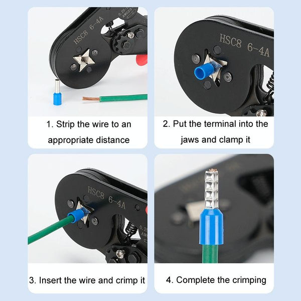 5. Use special terminal crimping pliers for crimping, and you can choose quadrilateral or hexagonal edge compression according to personal needs