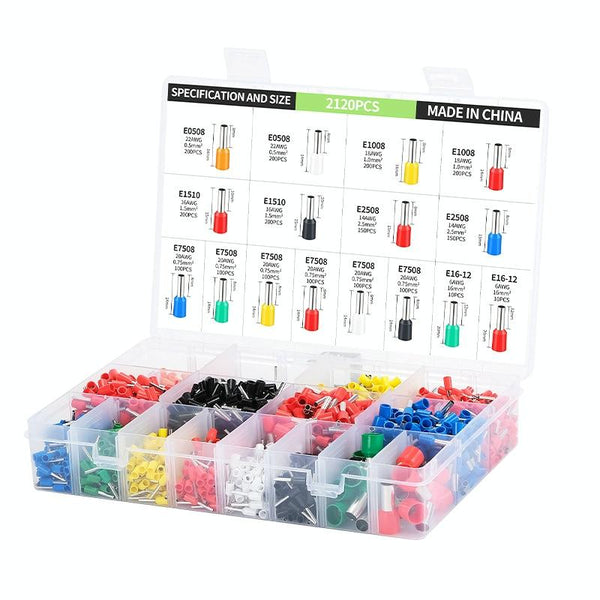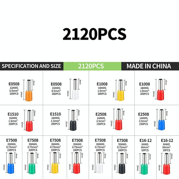 2120pcs /Set 0.5-16MM European Style Tube Type Wiring Cold Press Terminal Set(Terminal Box Package)