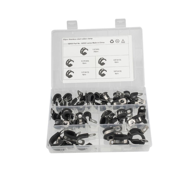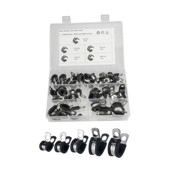 42 PCS Car Rubber Cushion Pipe Clamps Stainless Steel Clamps