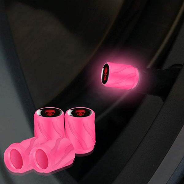 4pcs /Set Luminous Car Motorcycle Tire Modified Valve Cap, Color: Pink Red Skull