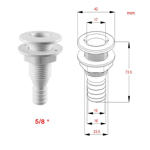 5/8 inch Plastic Thru-Hull Bilge Fitting For Bilge Pump Drain or Vent Hose Fitting for Boats Marine Yacht Sail Camper Truck