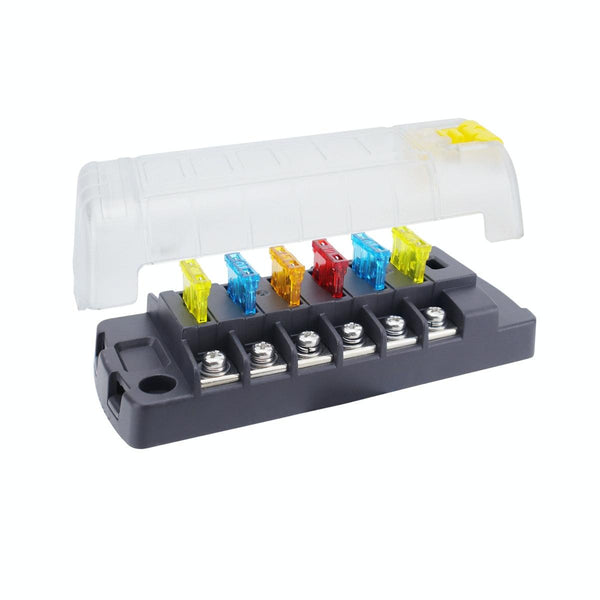 6-Way Plug-In Insulated Cover Fuse Box For Cars Yachts, Set: Upgraded Version B