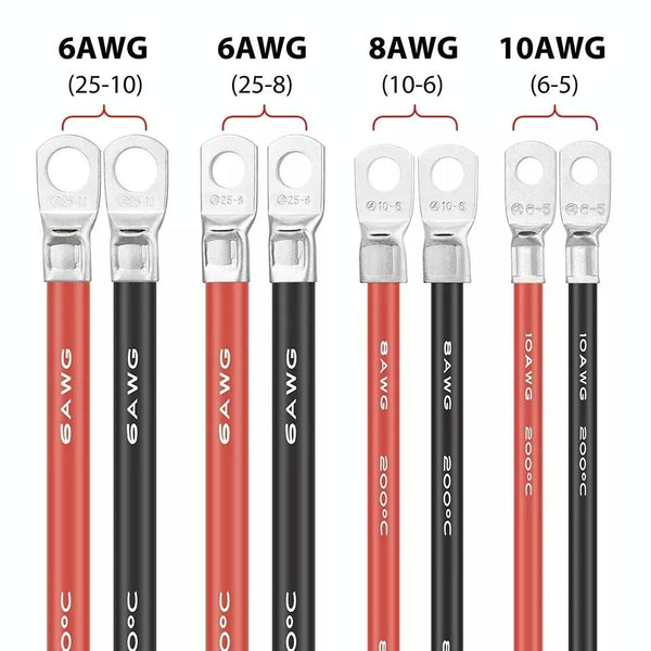6AWG 25-8 Car 50cm Red + Black Pure Copper Battery Inverter Cable