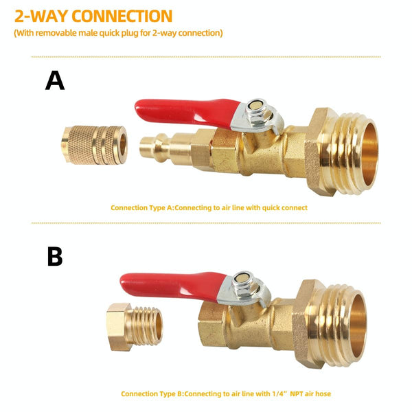 1. Winterize blowout adapter: this winterize blowout adapter is designed to prevent freezing of garden water pipes, sprinkler systems, and faucets by blowing water from tap water or pipes, this is a convenient antifreeze and antifreeze method