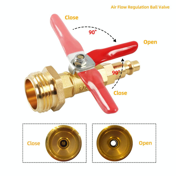 5. Easy to operate: screw the water pipe to the female thread side and connect the quick plug to the quick coupling onside the air compressor line, turn on the air compressor and rotate around the ball stem to open or close and adjust the air flow rate to blow dry water from the water pipe