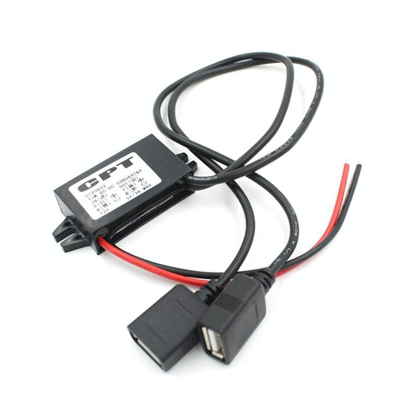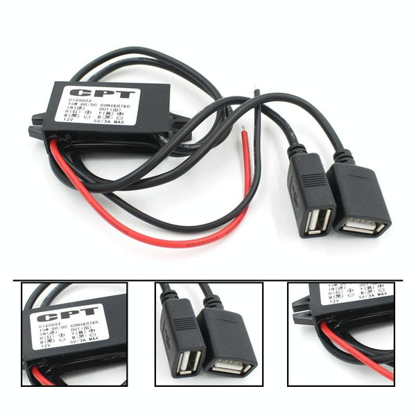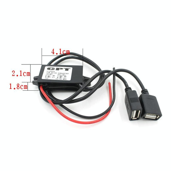 Car Motorcycle Dual USB Car Charger DC 12V To 5V 3A Power Adapter with for Car GPS Tracker DVR, Length: 1m