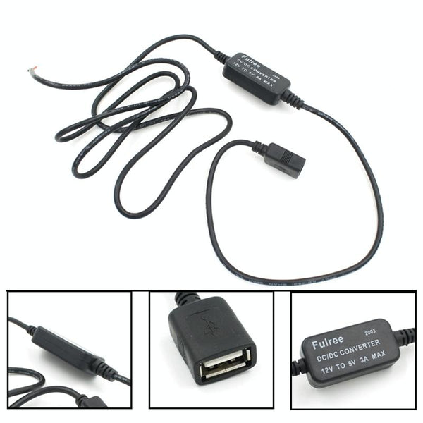 Car Motorcycle Single USB Car Charger DC 12V To 5V 3A Power Adapter for Car GPS Tracker DVR, Length: 1m