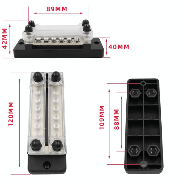 CP-3023-01 150A 12-48V RV Yacht Double-row 6-way Busbar(Black)