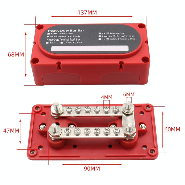CP-3087-02 100A 48V 12-way M6 Terminal Busbar(Red)