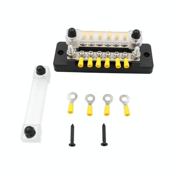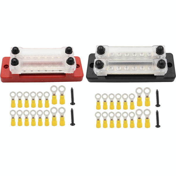 CP-3114 1 Pair 150A 12-48V RV Yacht Double-row 6-way Busbar with 32pcs Terminals