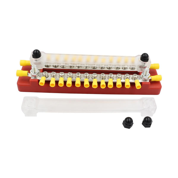 CP-3115 1 Pair 150A 12-48V RV Yacht Double-row 12-way Busbar with 56pcs Terminals