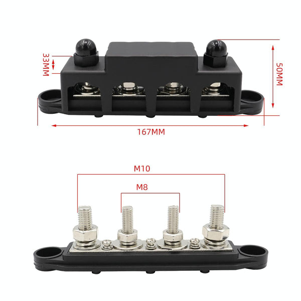CP-4017 M10+M8 Power Distribution Block Terminal Studs with Terminals(Black)